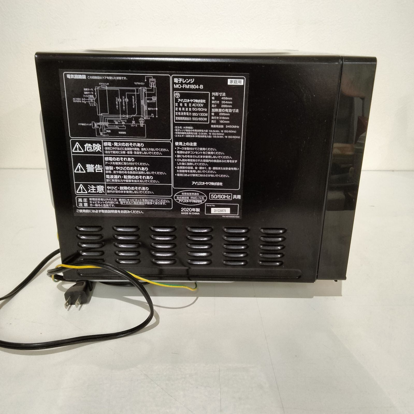 [N-6364] アイリスオーヤマ 20年製 電子レンジ MO-FM1804-B