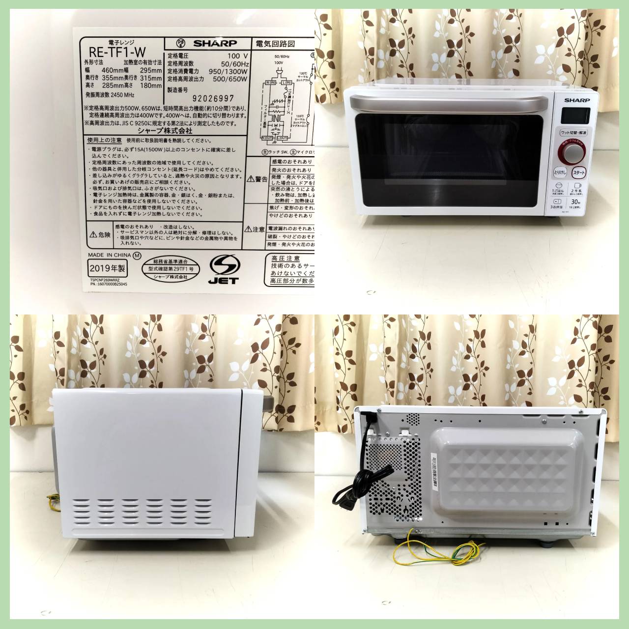 シャープ 電子レンジ 2019年製 RE-TF1-W 50/60Hz