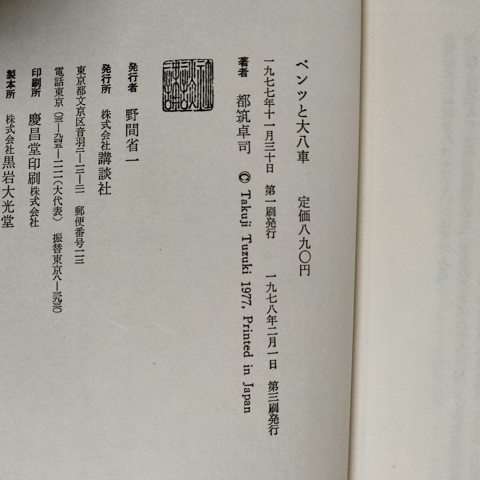 [N-6677] ベンツと大八車 都筑卓司 講談社