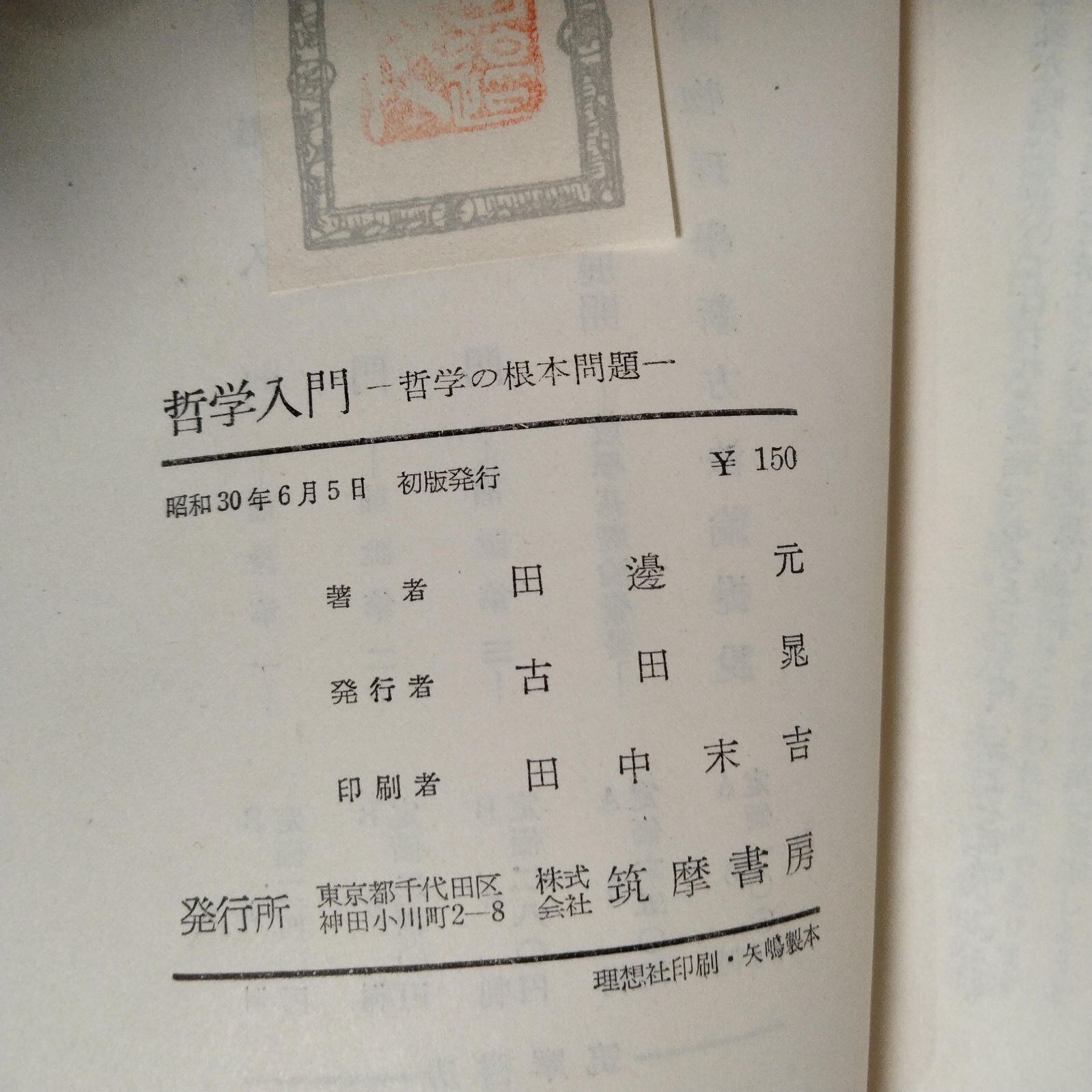 哲学入門 哲学の根本問題 田邊元 筑摩書房