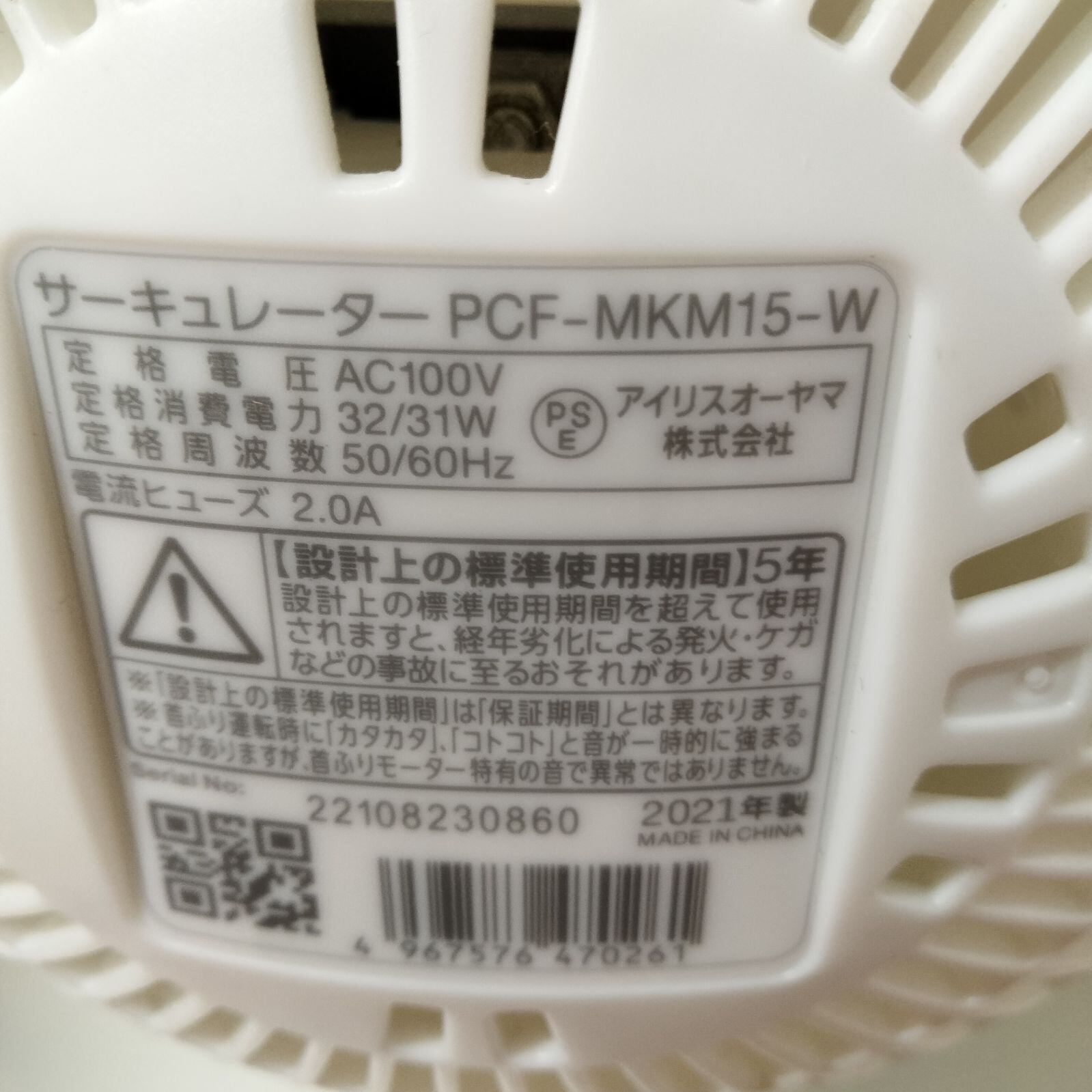 IRIS OHYAMA アイリスオーヤマ サーキュレーター 2021年製 PCF-MKM15-W