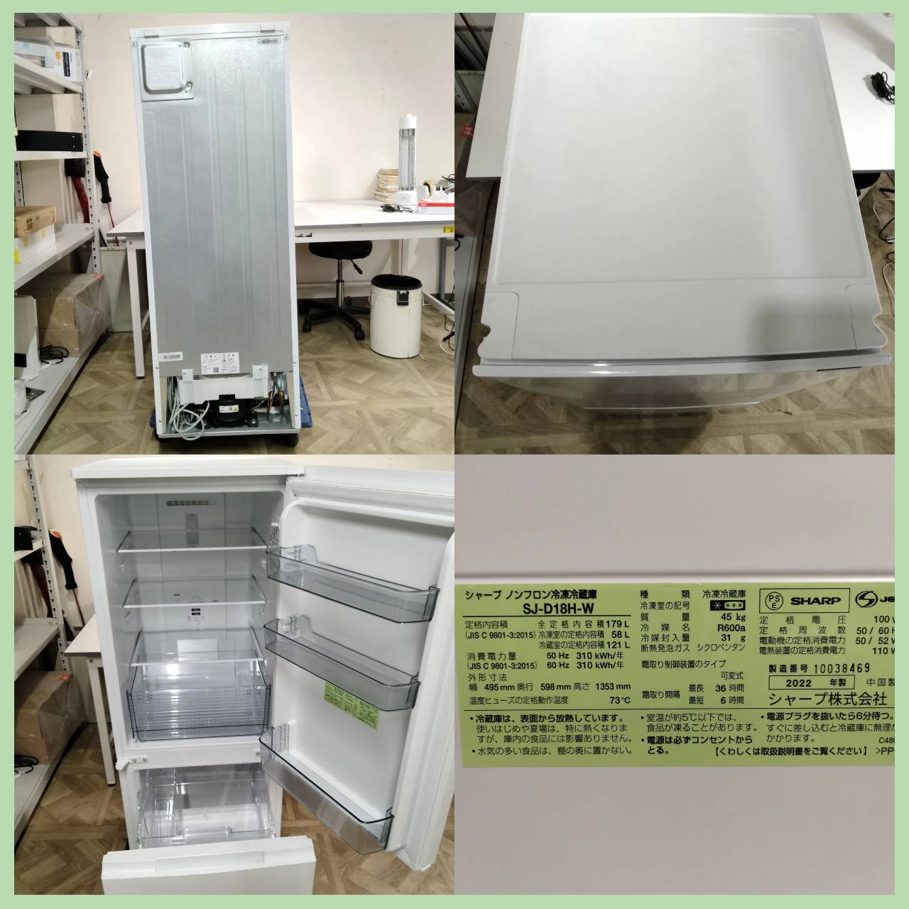 [N-6721] SHARP シャープ 冷凍冷蔵庫 179L 2022年製 SJ-D18H-W
