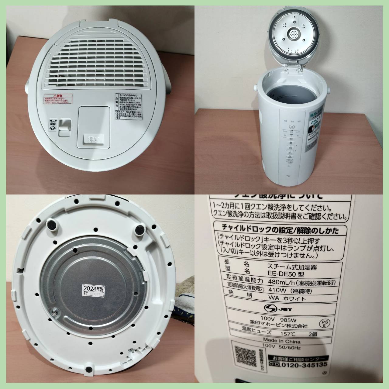 象印 ZOJIRUSHI スチーム式加湿器 2024年製 EE-DE50
