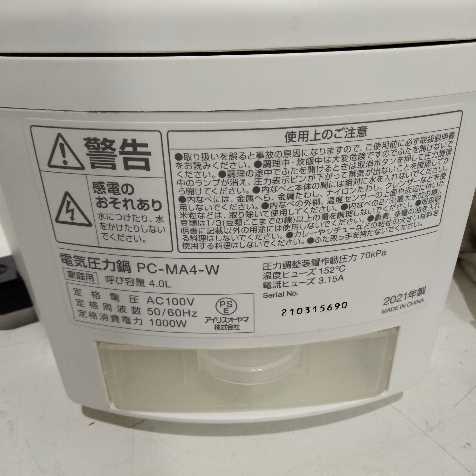 アイリスオーヤマ 2021年製 電気圧力鍋 PC-MA2