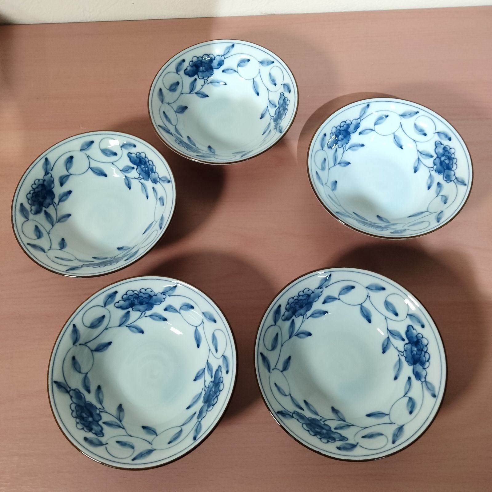 [N-6865] 永祥窯 内外唐草煮物鉢 5枚セット