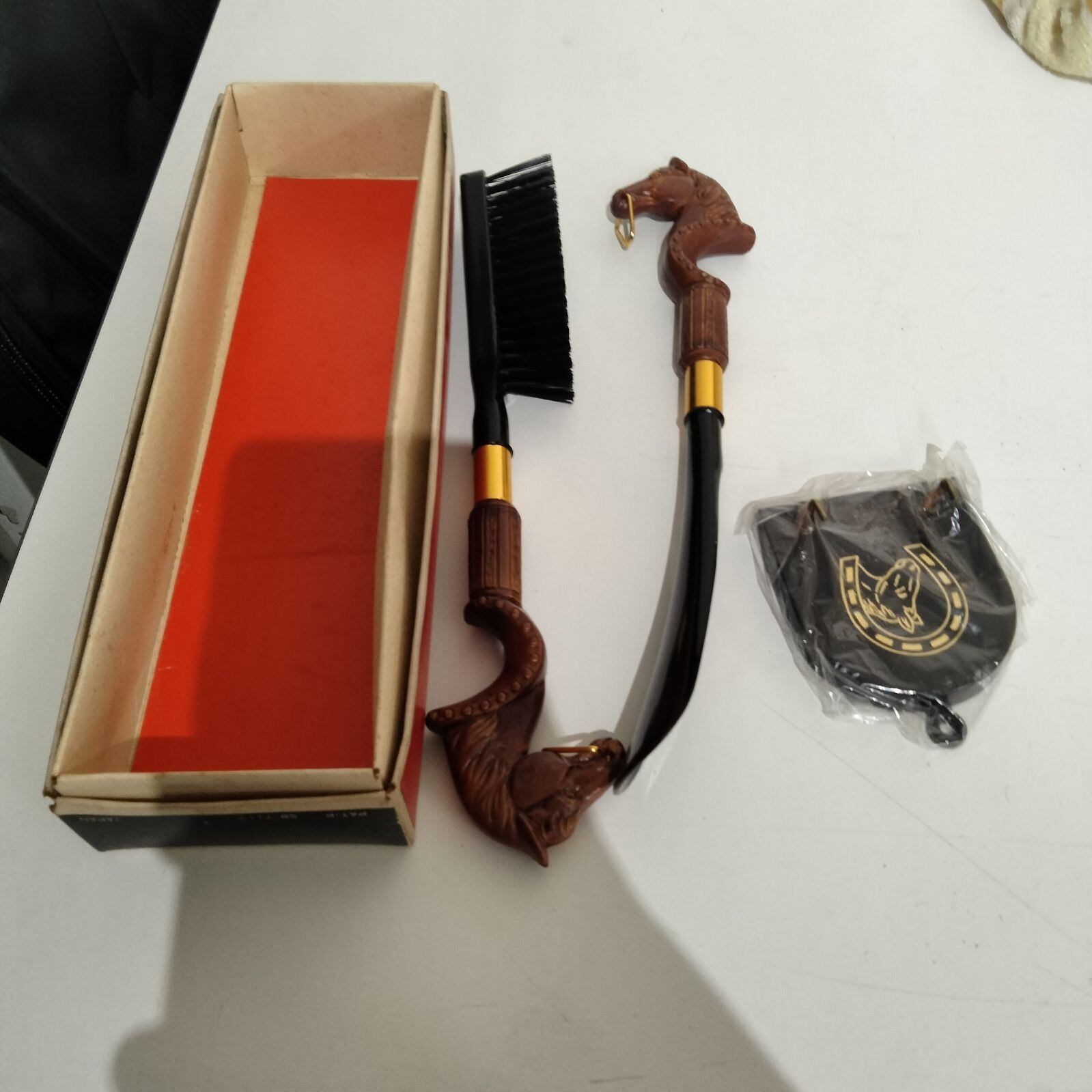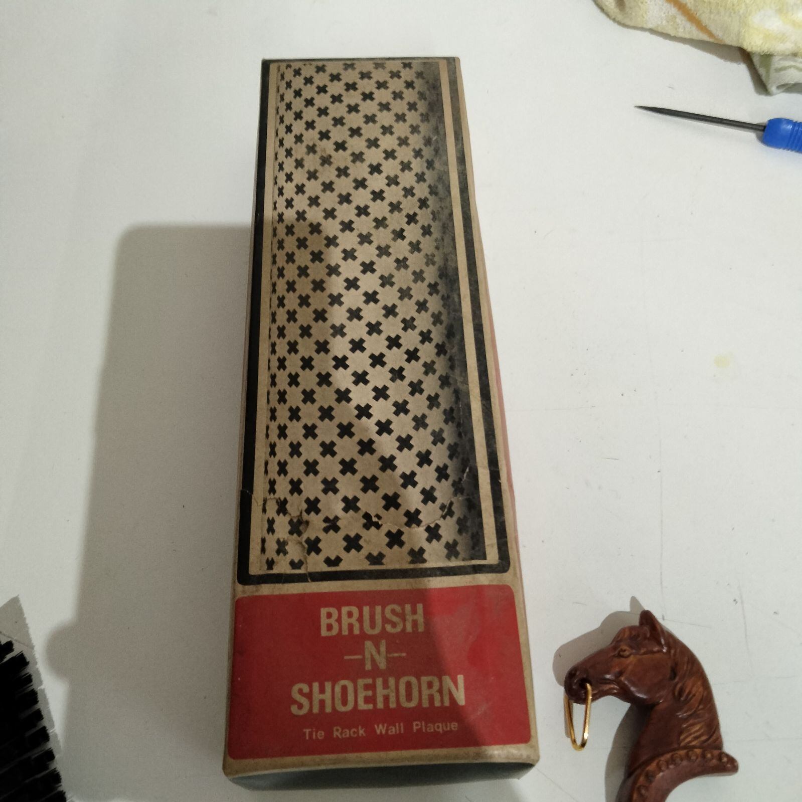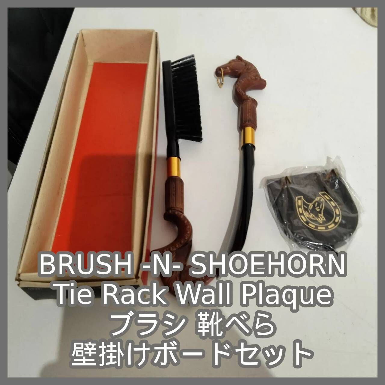 BRUSH -N- SHOEHORN Tie Rack Wall Plaque ブラシ 靴べら 壁掛けボードセット