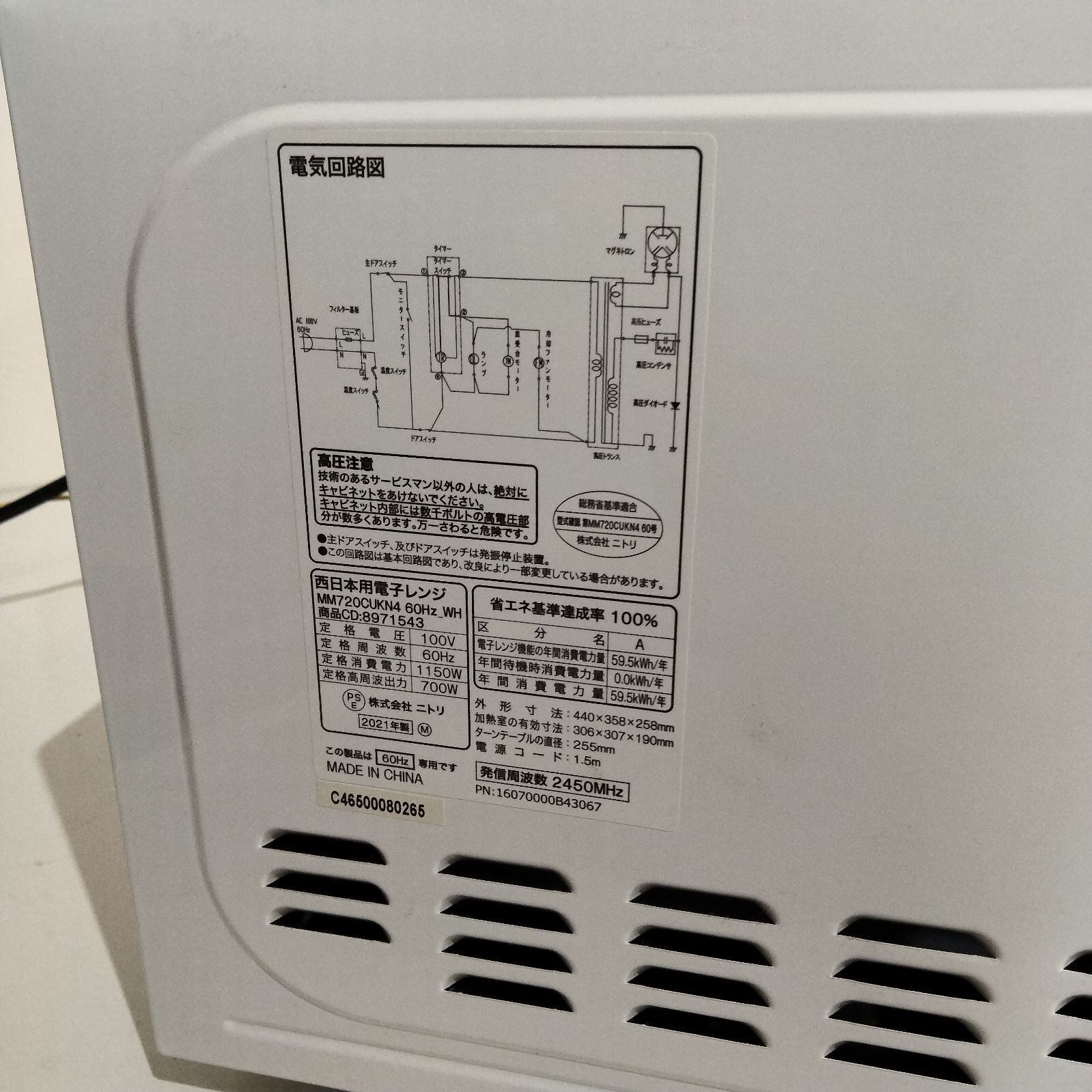 ニトリ 2021年 電子レンジ MM720CUKN4