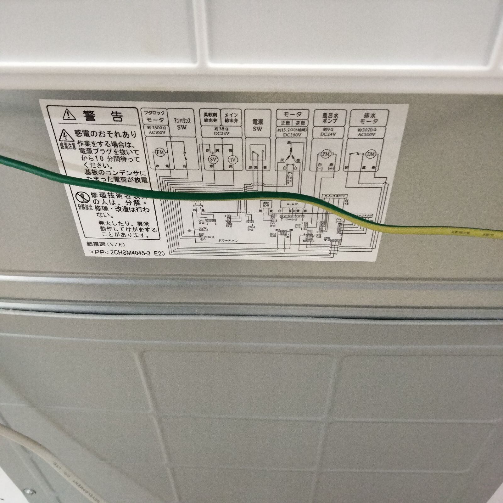 ・電源コード、給水、排水ホース、アース線:あり