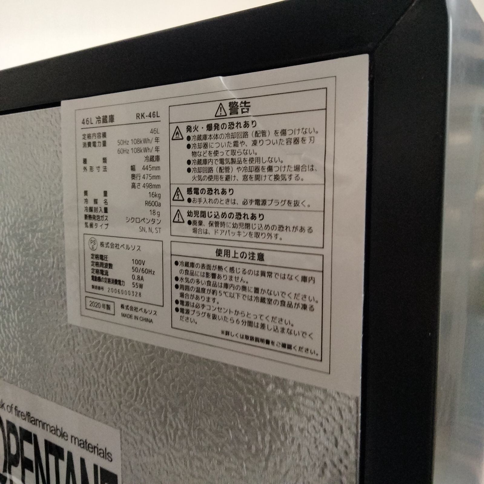 [N-6916] ベルソス 46L 1ドア冷蔵庫 RK-46L