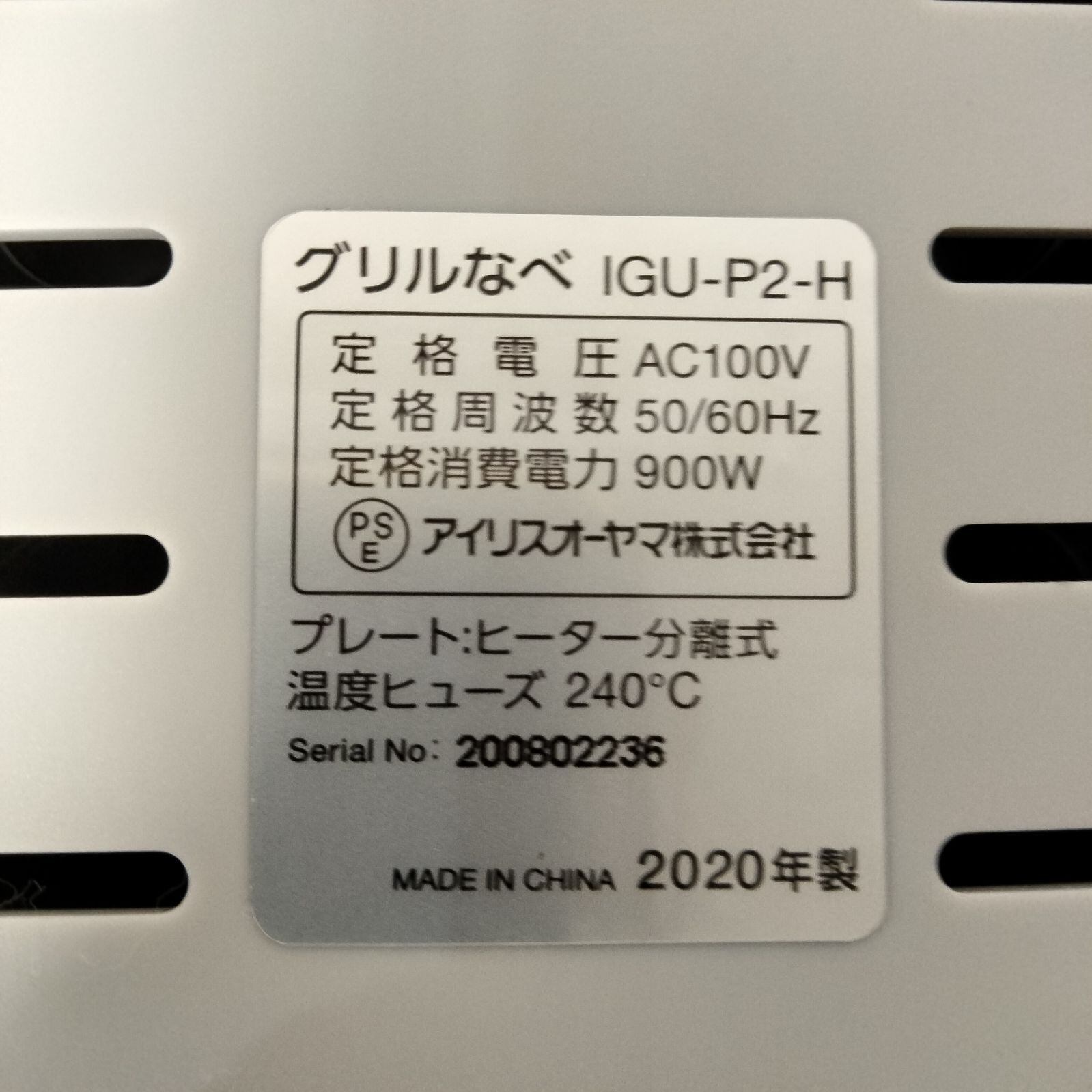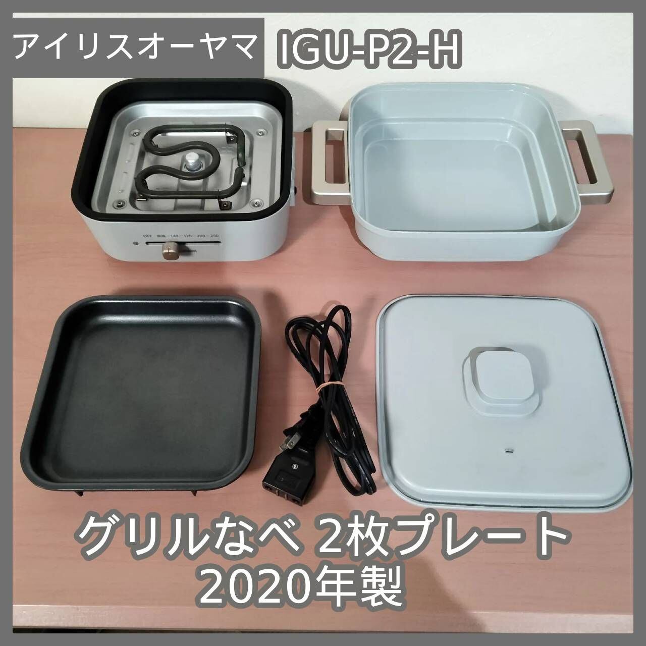 IRIS OHYAMA アイリスオーヤマ グリルなべ 2枚プレート 2020年製 IGU-P2-H