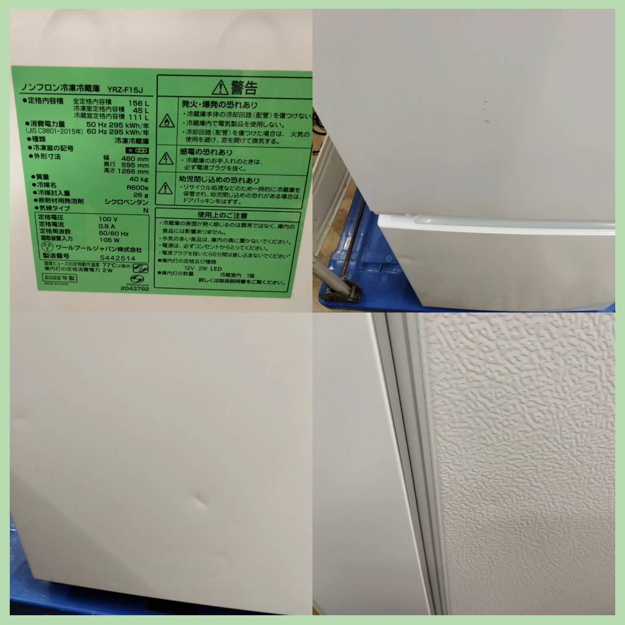 ワールプールジャパン yselect ノンフロン冷凍冷蔵庫 156L 2022年製 YRZ-F15J