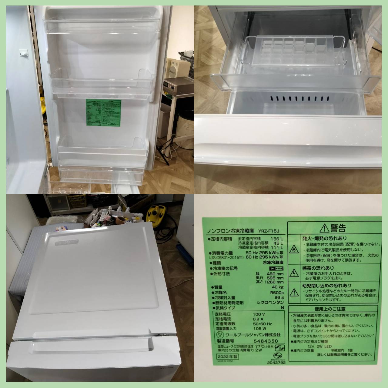 ワールプールジャパン yselect ノンフロン冷凍冷蔵庫 156L 2022年製 YRZ-F15J
