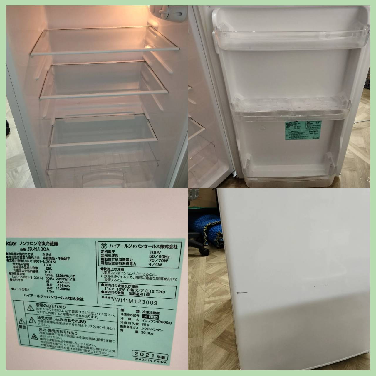 [N-7036] Haier ハイアール ノンフロン冷凍冷蔵庫 130L 2021年製 JR-N130A